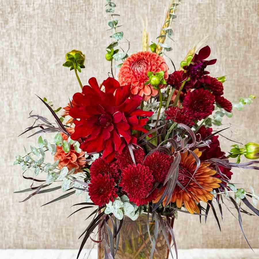 Inspired by the breathtaking colors of autumn leaves, our Fall Foliage arrangement blends earthy rust tones, deep burgundy blooms, burnt orange accents, and natural wheat stems for a warm, rustic display. This arrangement evokes the crisp air and golden landscapes of the season, making it perfect for cozy home décor, festive gatherings, or thoughtful seasonal gifts. Each stem is carefully selected to mirror nature’s palette—bringing the beauty of the outdoors inside.